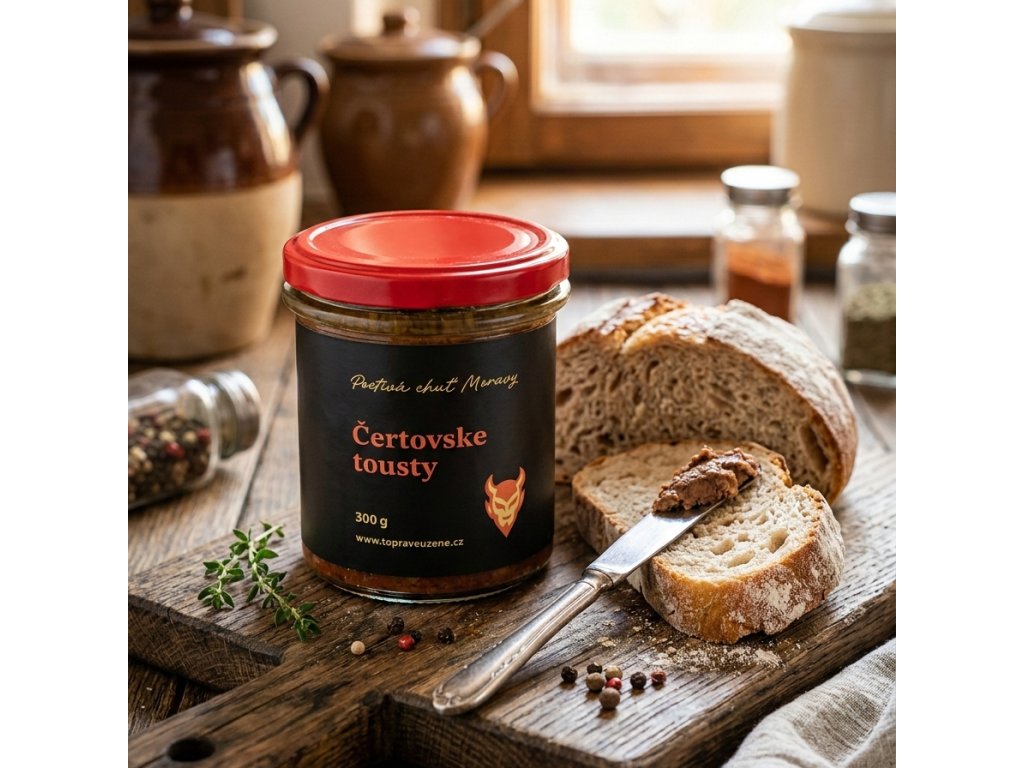 Naše Čertovské tousty jsou stvořeny pro ty, kteří se nebojí trochy pálivosti. Základem je kvalitní maso a směs koření, která po rozpečení na křupavém chlebu rozvine svou plnou, „pekelně“ dobrou chuť. Skvěle chutnají na klasických topinkách potřených česnekem, ale i jako rychlá večeře na zapečeném toustovém chlebu se sýrem. Tradice z Moravy, která vás zahřeje.